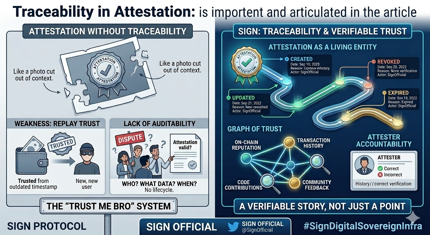 Mình từng nghĩ ở @SignOfficial attestation chỉ đơn giản là một “con dấu niềm tin” ai đó xác nhận một điều gì đó là đúng, và thế là đủ. Nhưng sau đó mình nhận ra vấn đề không nằm ở việc có attestation, mà nằm ở việc hiểu được toàn bộ hành trình của nó. Một attestation nếu không có traceability thì giống như một bức ảnh bị cắt khỏi bối cảnh: nhìn có vẻ đúng, nhưng không biết nó đến từ đâu, và có còn đúng hay không.