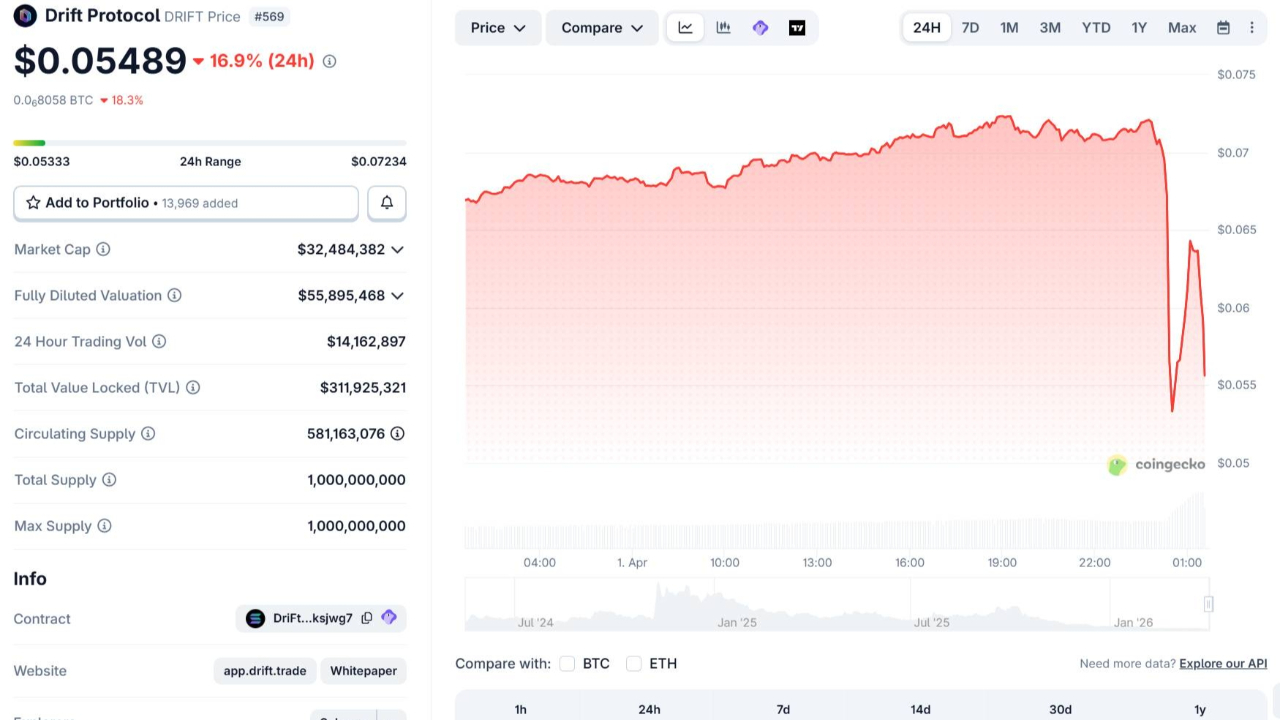 Đêm khuya ngày 01/04/2026, cộng đồng tiền mã hóa trên X (Twitter) "tá hỏa" trước thông tin Drift Protocol - sàn Perp DEX hàng đầu trên Solana - đã bị tấn công và bòn rút số tiền khổng lồ lên đến hơn 270 triệu USD.