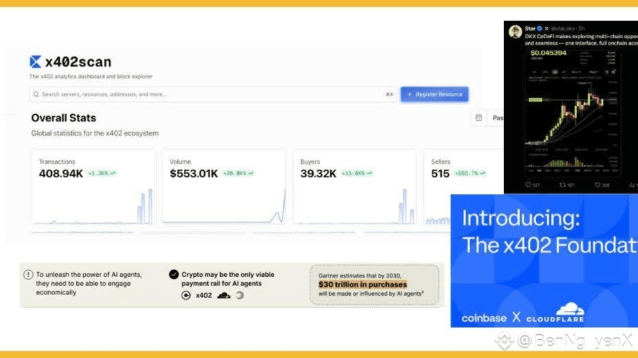 Una nuova narrativa sta conquistando il mercato: x402. I token legati a questa tendenza su Base e Solana stanno aumentando, il CEO di OKX lo sta promuovendo pubblicamente e Binance Wallet ha già aggiunto una sezione dedicata per esso.