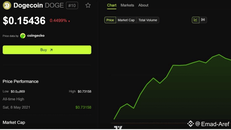 Nonostante l'inerzia normativa, DOGE è sceso del 4.61% nelle ultime 24 ore e attualmente viene scambiato a $0.1543.