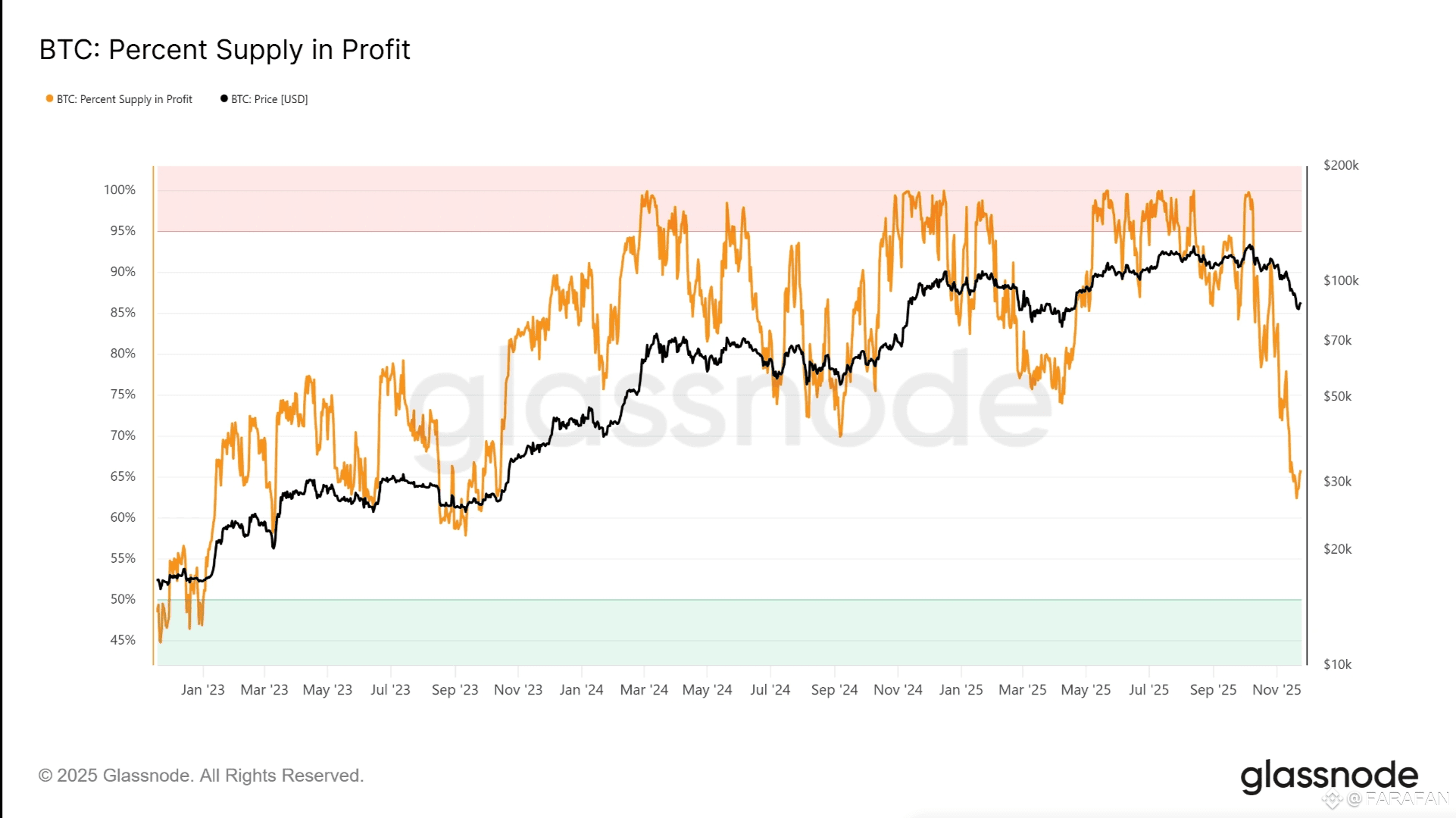 Ciò significa che più di tre quarti di tutto il SOL era bloccato in prodotti istituzionali o di validazione, nessuno dei quali mostra comportamenti di vendita rapida. In particolare quando SOL è sceso a 121 usd, l'offerta mantenuta in perdita è stata ridotta all'80%, un livello che era stato raggiunto precedentemente quando il prezzo si aggirava attorno ai 20 usd, il che illustra la sensibilità della metrica alla rapida rivalutazione del prezzo piuttosto che alla capitolazione strutturale.