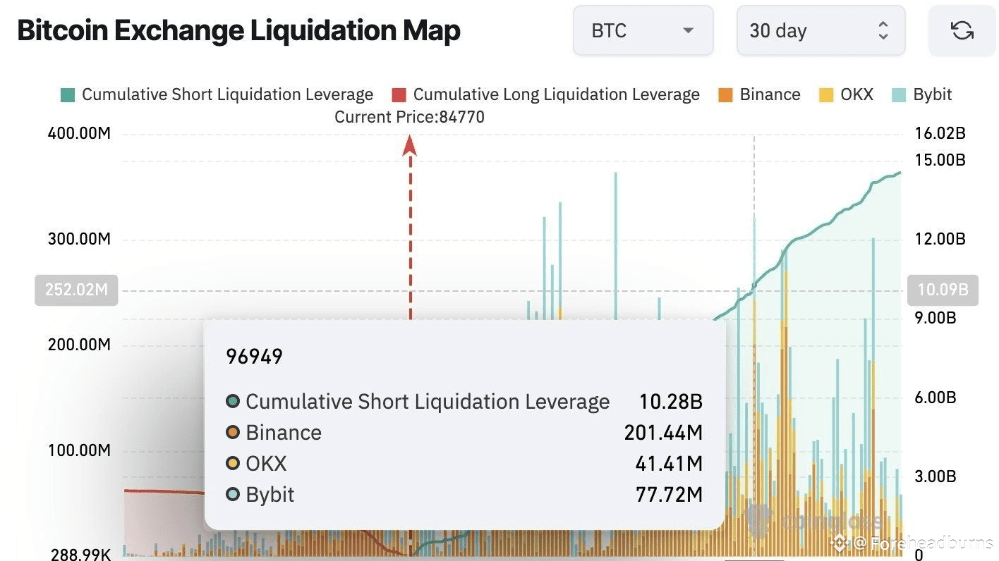È in atto una massiccia trappola di liquidità. Se Bitcoin raggiunge $96,949, oltre $10.2 MILIARDI in leva corta saranno liquidati.