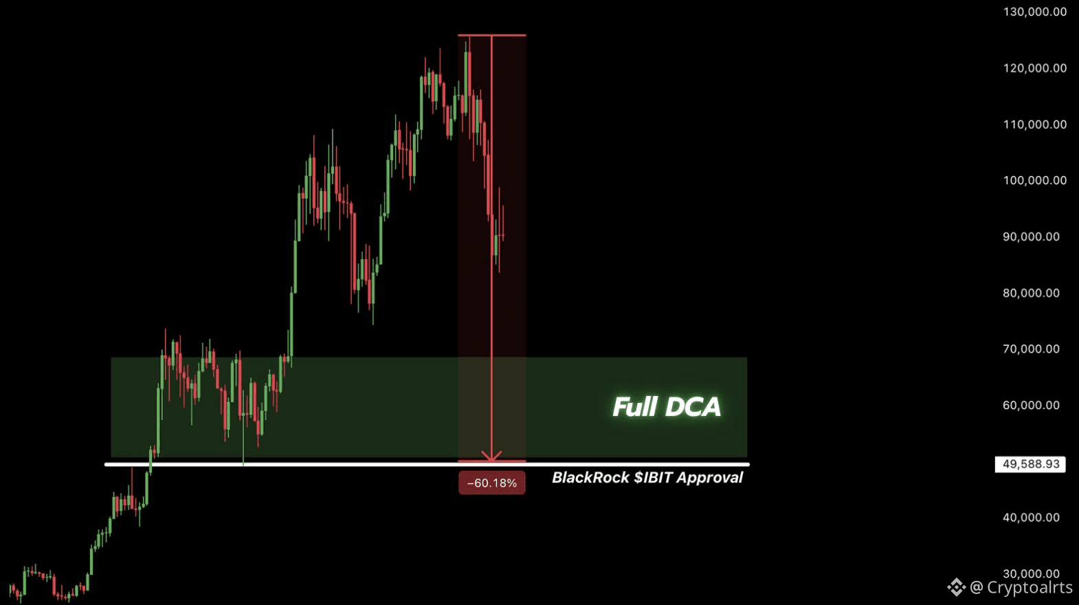Non sto cercando di individuare un singolo minimo di prezzo. Invece, ho definito un ampio "intervallo di accumulo strategico" tra ~$70,000 e **$50,000**. Il limite inferiore di questo intervallo è criticamente importante, poiché si allinea con il prezzo di Bitcoin al momento dell'approvazione storica dell'ETF spot di BlackRock nel gennaio 2024.