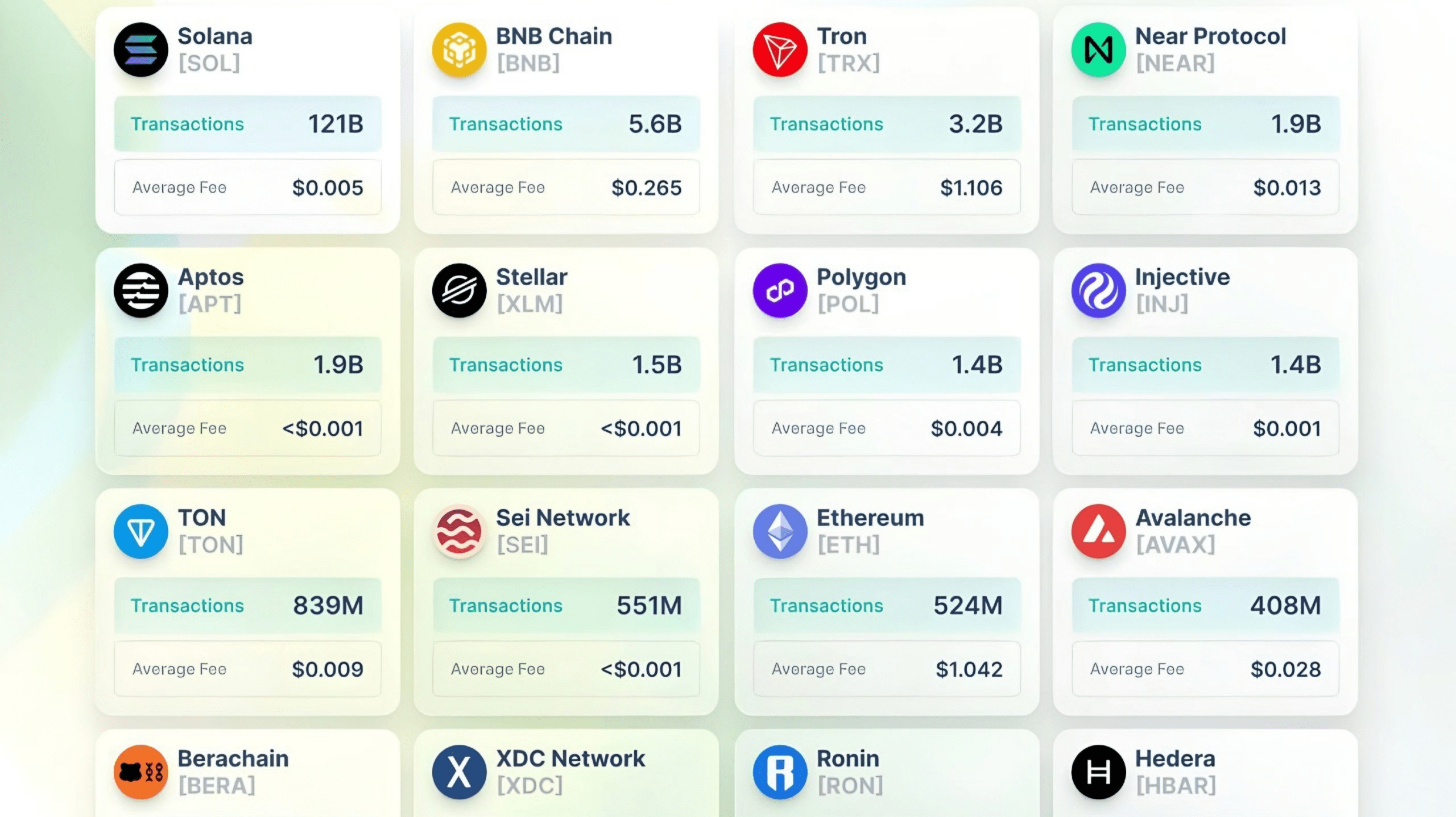 121+ miliardi di transazioni, più di ogni altra catena messa insieme. Velocità + scala effettivamente consegnata