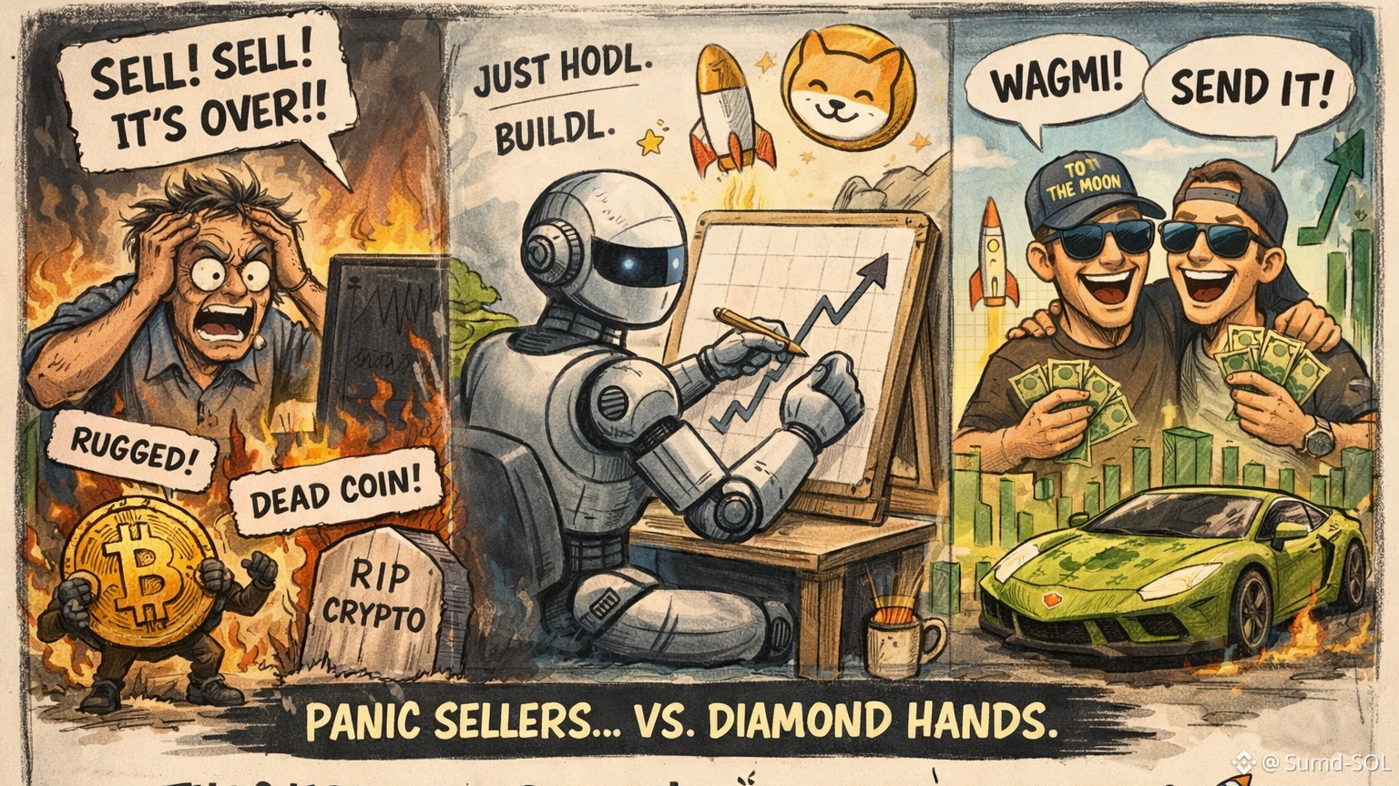 Mercato in calo. Memes in aumento. Convizione inamovibile 🤖🚀