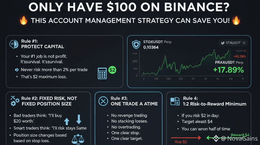 I tuoi $100 sono la tua ancora di salvezza. Il tuo obiettivo principale non è diventare ricco rapidamente, ma sopravvivere e crescere in modo sostenibile. Tratta ogni dollaro come se fosse l'ultimo.