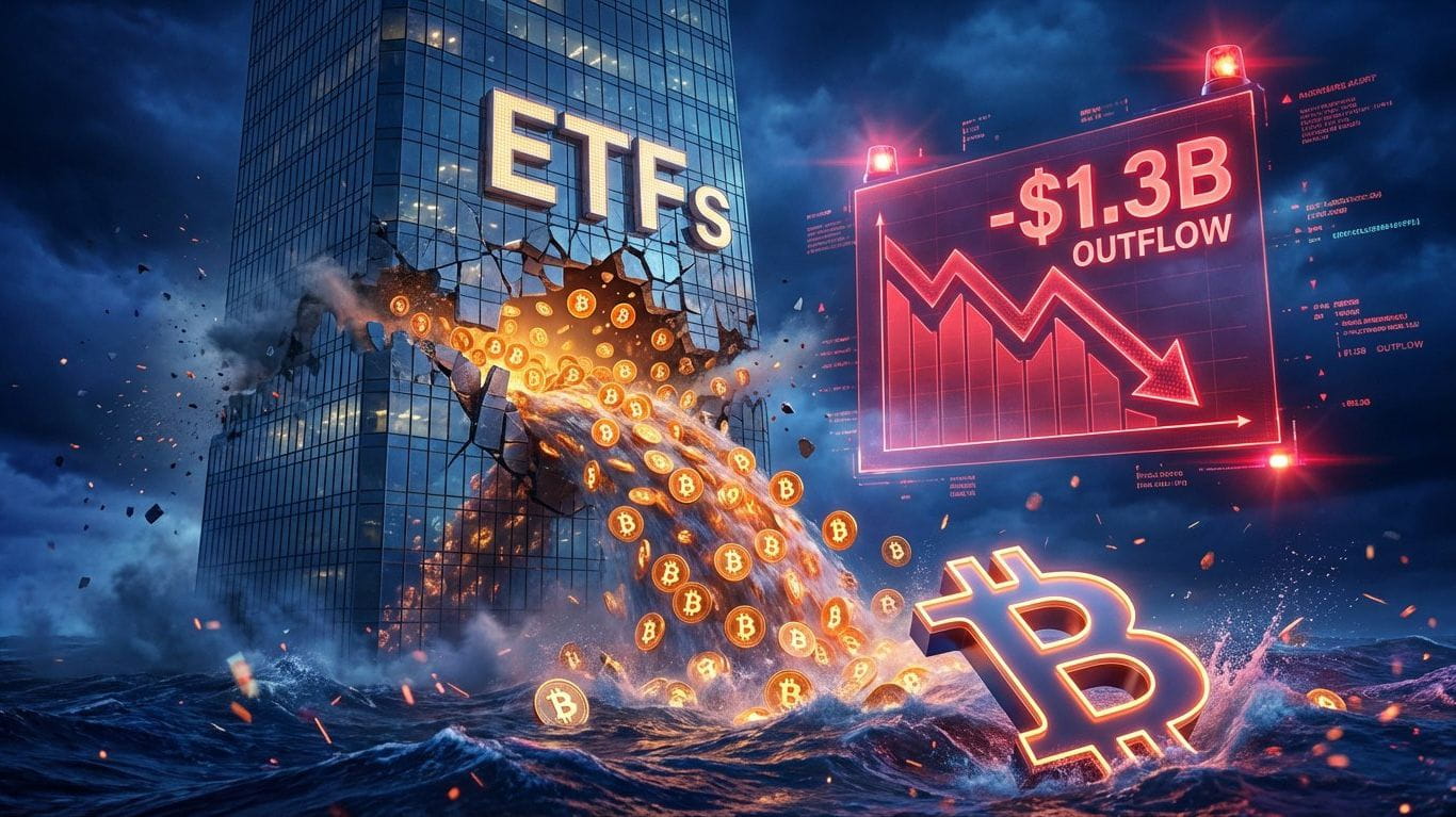 We've just witnessed a massive sentiment shift in the institutional space. A staggering $1.3 Billion has been pulled from Spot Bitcoin ETFs, completely erasing the inflows from the previous week.