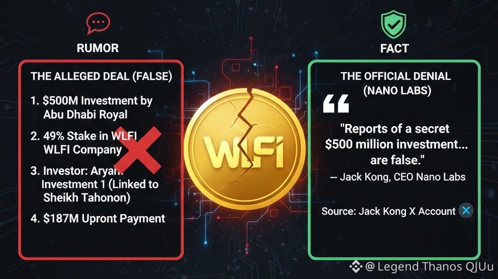 "Le notizie di un investimento segreto di $500 milioni... per acquisire una partecipazione del 49% in WLFI sono false." — Jack Kong, CEO di Nano Labs