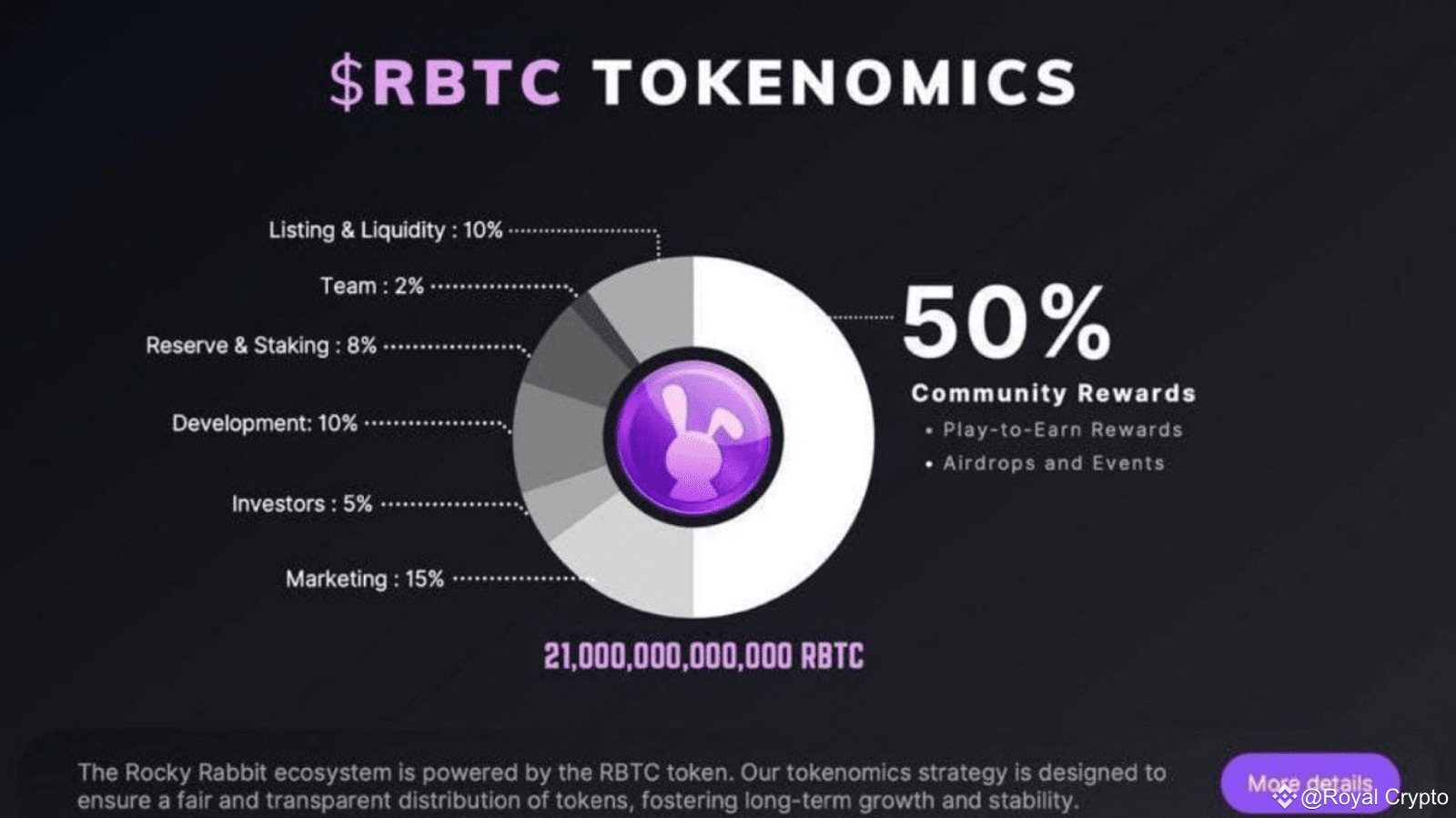 Distribuția de jetoane a lui Rocky Rabbit este planificată meticulos pentru a recompensa comunitatea, a spori lichiditatea și a asigura viabilitatea proiectului pe termen lung: