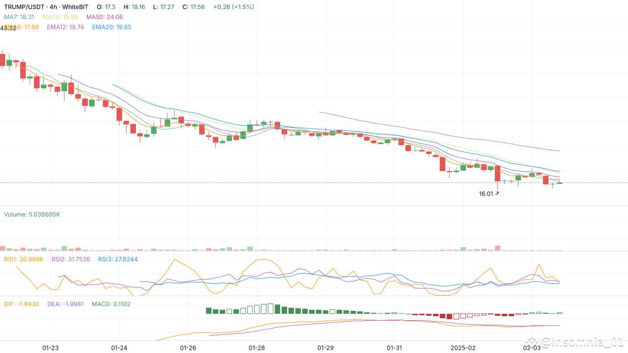 $TRUMP a înregistrat o scădere, cu indicatori tehnici care sugerează o tendință de scădere. RSI-ul apropiindu-se de teritoriul de vânzare excesivă sugerează un potențial de recuperare pe termen scurt. Monitorizarea nivelurilor de suport de 15,00 USD și a rezistenței de 20,00 USD va fi crucială pentru anticiparea următoarei mișcări a TRUMP.