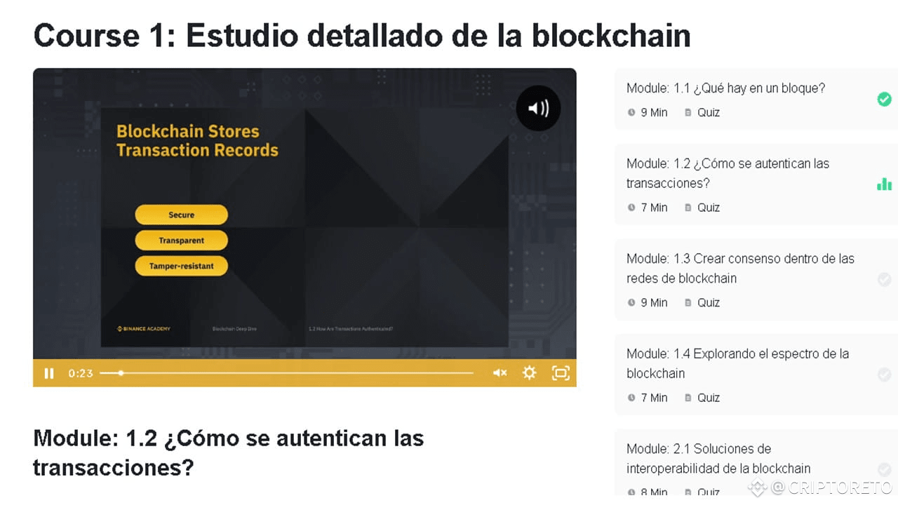 💪Continuă Cursul Intermediar de Binance (deja am ajuns la modulul de Autentificare a Tranzacțiilor👌).