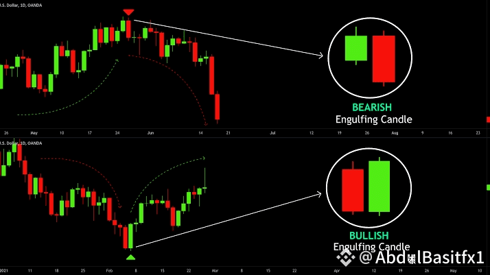 Acest model apare la vârful unei tendințe crescătoare. O lumânare verde mică este urmată de o lumânare roșie mai mare care o înghite. Sugerează că vânzătorii preiau controlul și o posibilă scădere se apropie, mai ales în apropierea rezistenței sau după o rally abruptă.📉🪙