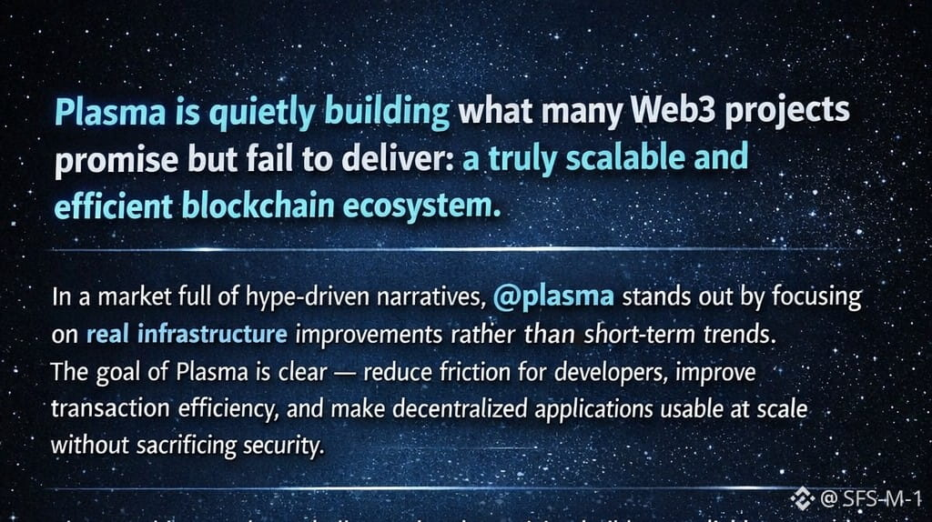 Plasma construiește liniștit ceea ce multe proiecte Web3 promit dar nu reușesc să livreze: un ecosistem blockchain cu adevărat scalabil și eficient. Într-o piață plină de narațiuni conduse de hype, @undefined iese în evidență prin concentrarea pe îmbunătățiri reale ale infrastructurii mai degrabă decât pe tendințe pe termen scurt. Obiectivul Plasma este clar — reducerea fricțiunii pentru dezvoltatori, îmbunătățirea eficienței tranzacțiilor și făcerea aplicațiilor descentralizate utilizabile la scară fără a sacrifica securitatea.