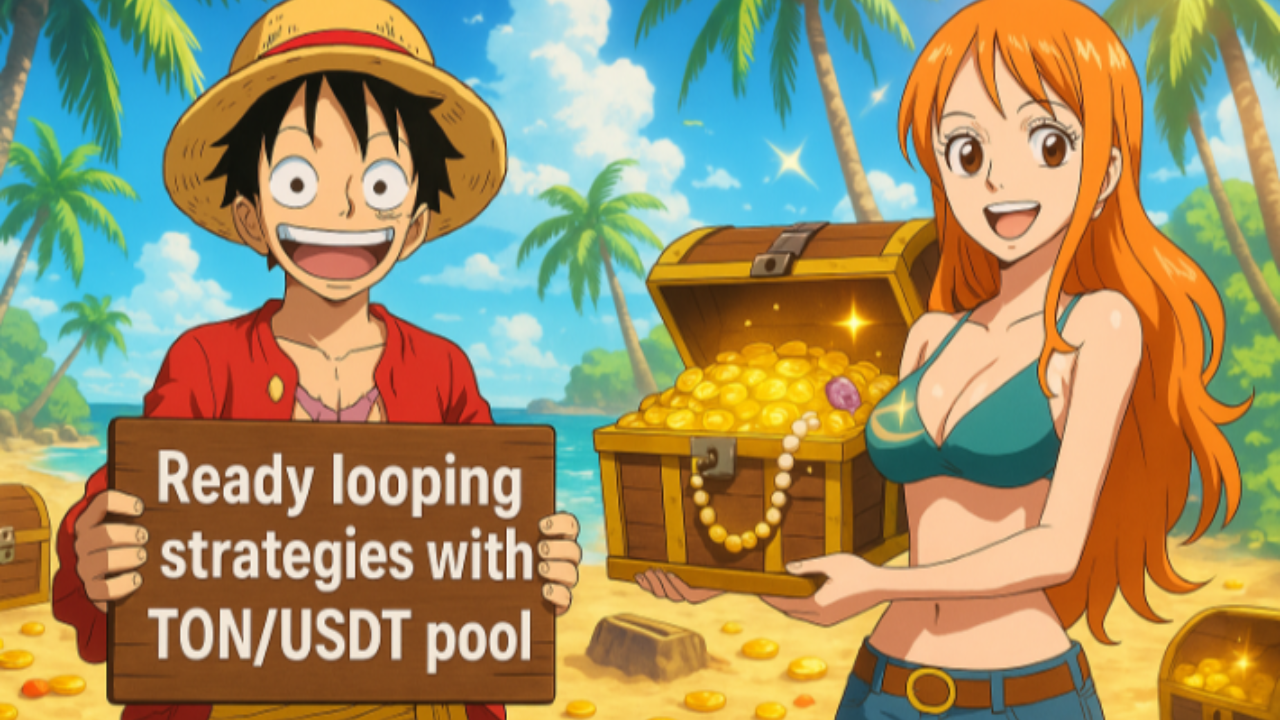 Ideea strategiei noastre de looping este de a pune tokenurile LP din piscina TON/USDT ca garanție pe EVAA, apoi să împrumutăm noi tokenuri TON și USDT, să le adăugăm înapoi în piscină și să repetăm🔄 — crescând APR-ul tău cu fiecare ciclu.