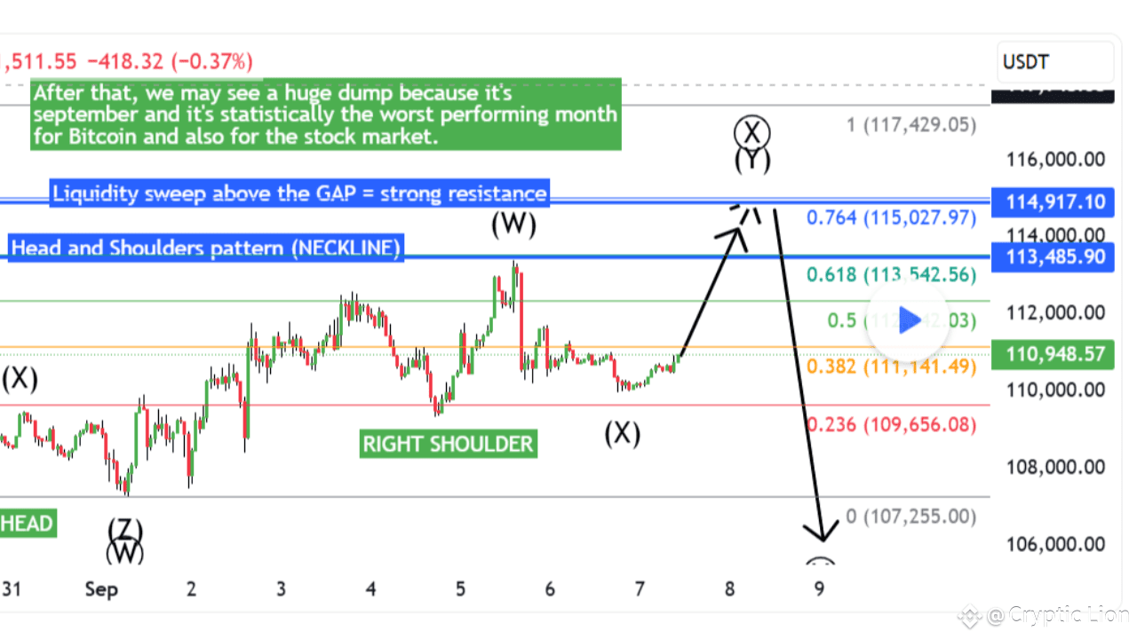 În plus, analistul subliniază că septembrie tinde să fie o lună slabă atât pentru Bitcoin, cât și pentru piețele financiare mai largi. Această tendință sezonieră susține scenariul în care prețul ar putea crește spre 115.000 USD și apoi să scadă brusc—posibil să coboare sub 105.000 USD.