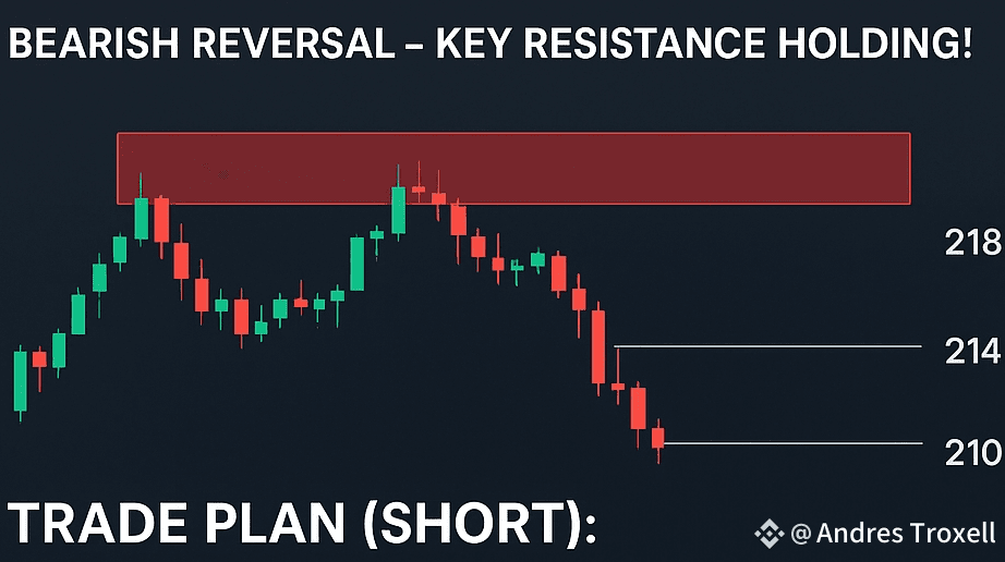 ✅ Reversare Bearish confirmată la rezistența de $218–$220