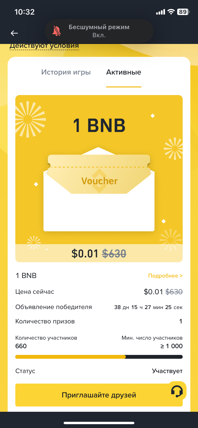 Если удача улыбнулась — ты забираешь главный приз 1 BNB = 500$