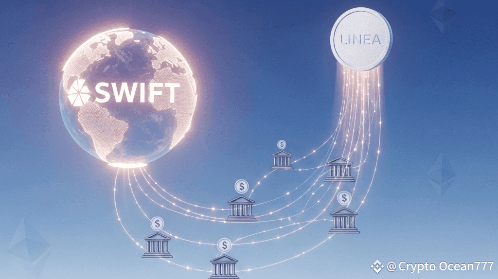 #LINEA Alertă: SWIFT — cea mai mare rețea de mesagerie financiară din lume, care gestionează peste 150 de trilioane de dolari anual — testează oficial plățile prin blockchain pe Linea, Layer 2 ultra-rapid al Ethereum dezvoltat de echipa din spatele MetaMask.