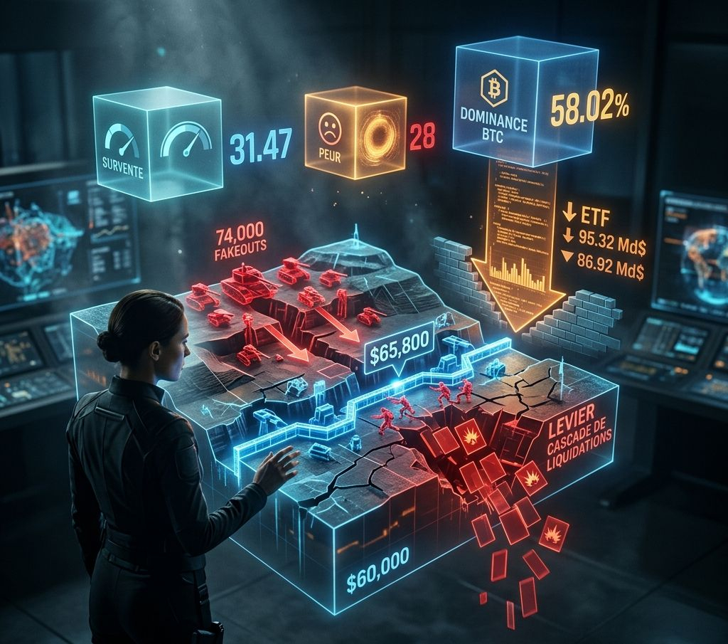 Le scénario catastrophe : Si le support des 65 800 $ lâche, ces positions seront forcées à la vente, créant un effet domino qui pourrait propulser le Bitcoin vers les 60 000 $ (voire plus bas) très rapidement.