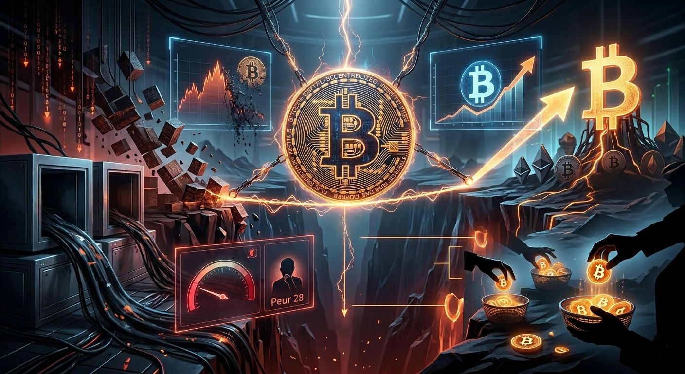 Sentiment de marché : 28 (Peur). La psychologie des foules est au plus bas. Comme on dit souvent : "Achète quand le sang coule dans les rues".