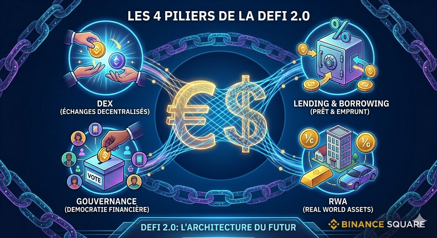 En 2026, la DeFi n'est plus un "Far West" expérimental. C'est une structure solide reposant sur quatre piliers interconnectés :