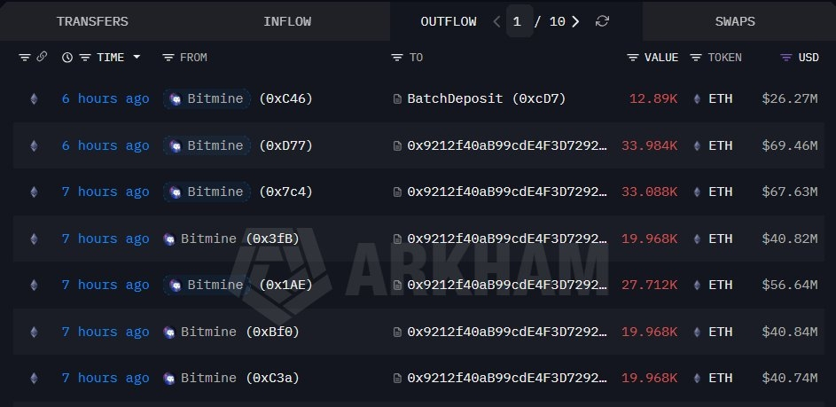Bitmine a crescut recent participația sa în Ethereum adăugând 167,578 ETH, conform Lookonchain și ChainCatcher. Această adăugare aduce suma totală de Ethereum staked de Bitmine la 3,310,221 ETH. Valoarea totală a Ethereum-ului staked de Bitmine este de aproximativ 6,7 miliarde de dolari.
