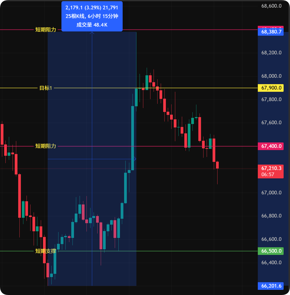 大饼早上9点半突破68300 这波涨幅3.29% 再次完成目标1.吃下2179点!恭喜再次入场的家人们!