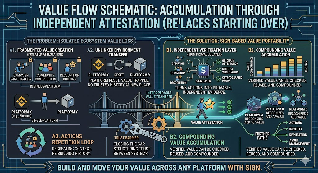 You can participate, qualify, and build a track record in one place, but when you step into a new campaign or ecosystem, none of that history is automatically recognized.