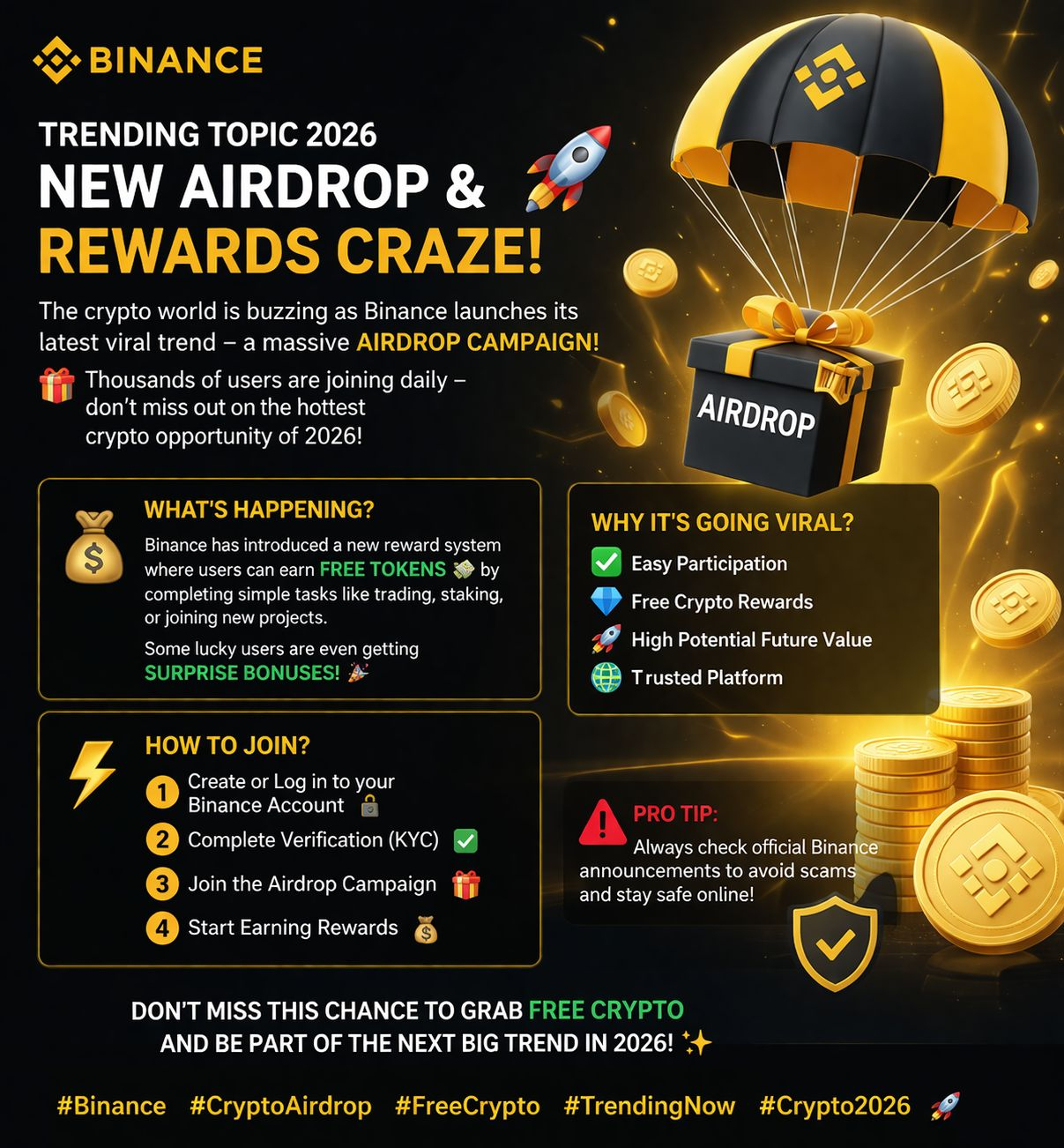 The crypto world is buzzing as Binance launches its latest viral trend — a massive Airdrop Campaign 🎁 that is catching attention worldwide! With thousands of users joining daily, this opportunity is becoming one of the hottest topics in crypto right now.