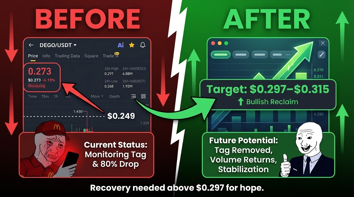 $DEGO just slid another 6%, dropping to $0.273 as the Monitoring Tag continues to strangle any recovery attempt. Volume remains thin at 6.88M tokens, making the token a ghost town for serious liquidity. Smart money hasn't touched this since March. The crowd is bleeding slowly. 📉