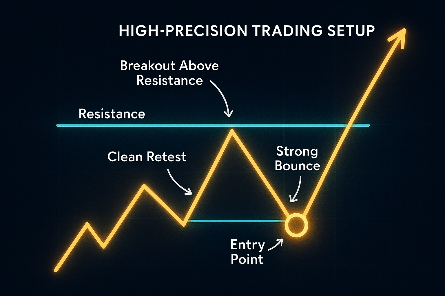 When price breaks a strong resistance level, it often comes back to retest that level as new support. This retest offers a lower-risk, higher-probability entry compared to chasing the initial breakout.