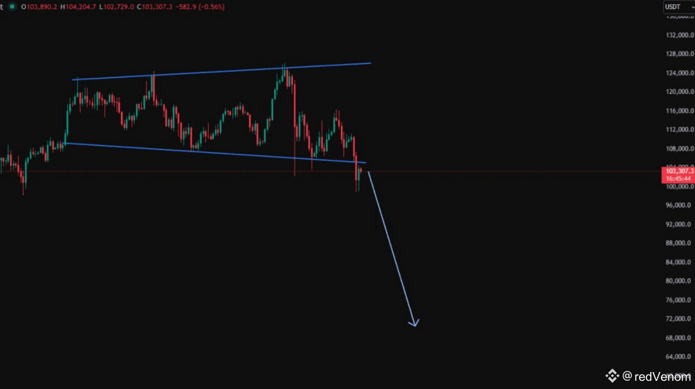 Prețul se întoarce în jur de 104K → retest → dacă este respins → 92K este țintit.
