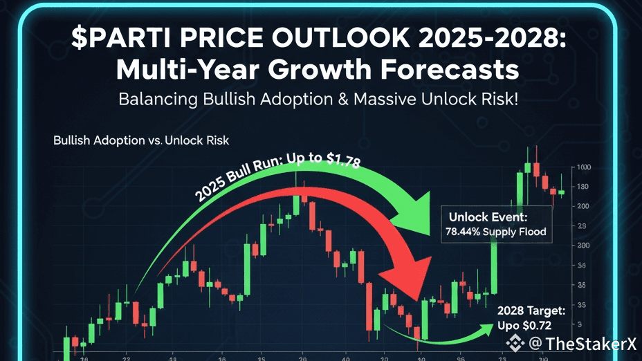 👉 Concluzie: Prețul $PARTI depinde de dacă utilitatea sa fundamentală și adoptarea de către utilizatori pot depăși riscul uriaș al ofertei de tokeni care vine la sfârșitul anului 2025.