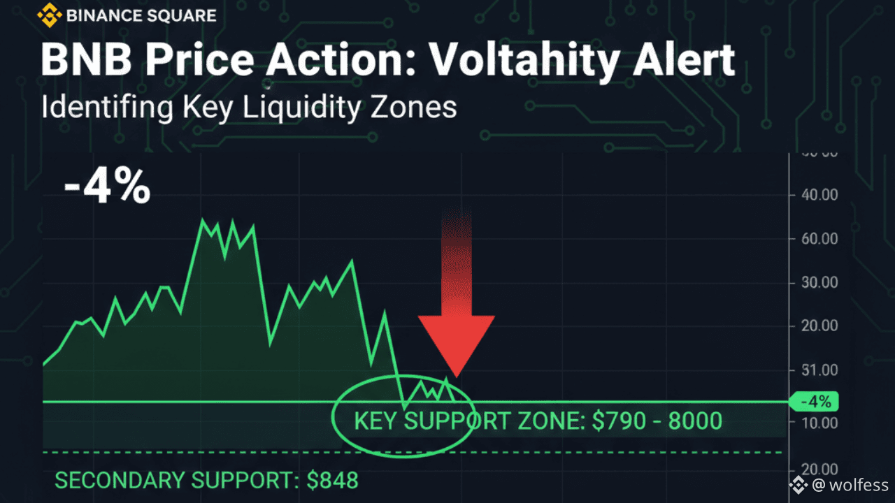 Ecosistemul $BNB navighează în prezent o corecție intraday abruptă, reflectând prudența mai generală observată în piața cripto astăzi. Cu o scădere de ~4%, atenția se mută de la tranzacționarea pe momentum la nivelurile de apărare instituțională.
