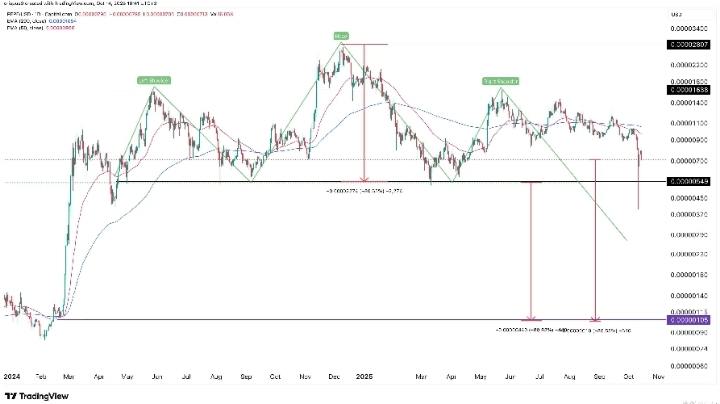 Evenimente recente de vânzare a balenelor — inclusiv o mare întoarcere de 2.2T PEPE la Binance cu o pierdere — evidențiază fluctuațiile de încredere ale balenelor și potențiala presiune de vânzare pe termen scurt. Unele indicatori tehnici (RSI, medii mobile pe termen lung) reflectă condiții de supravânzare sau momentum pesimist pe intervale mai largi. �