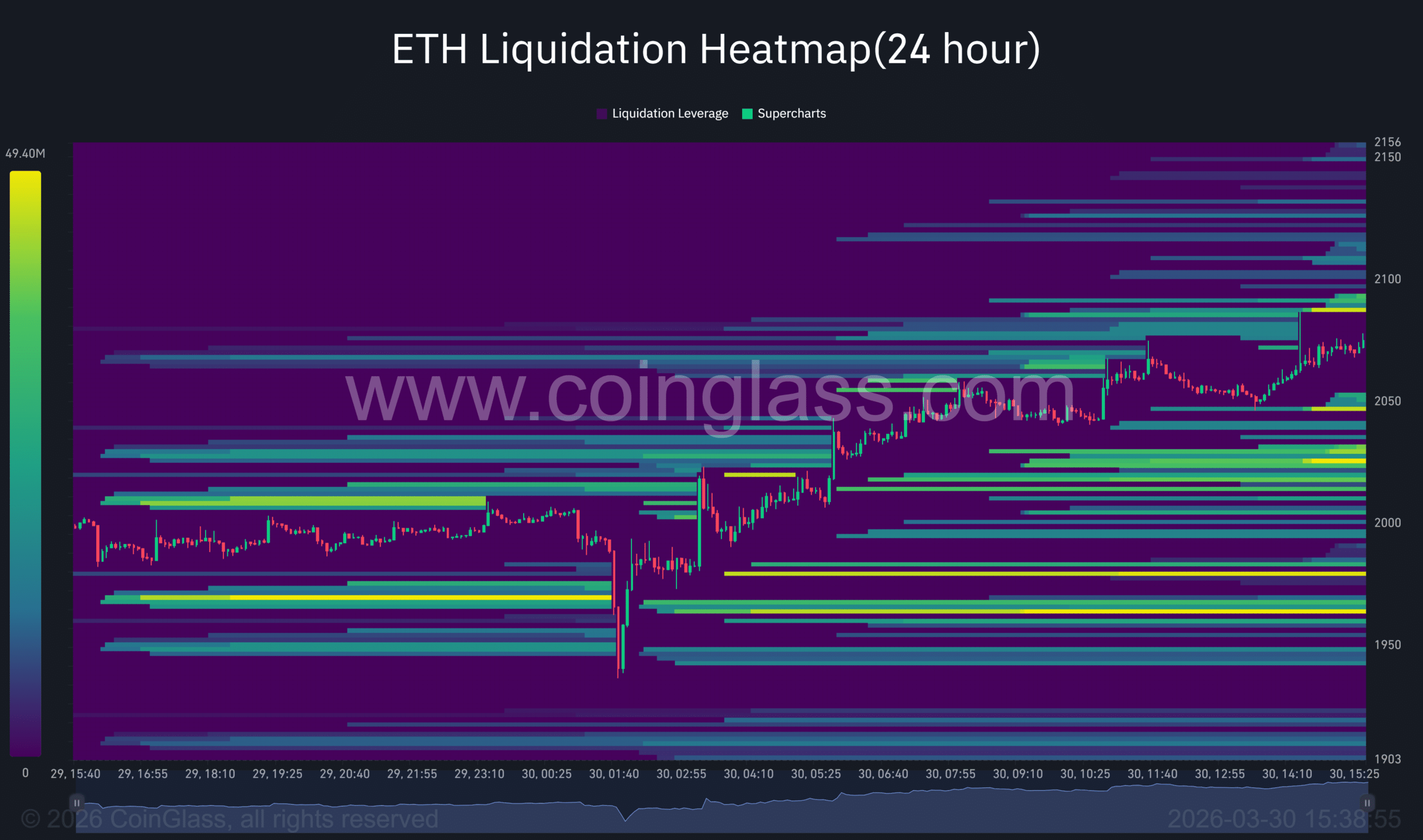 市场短期内可能会冲击2100美元至2150美元区间,这也是之前的阻力区域。同时,2000美元以下的空头头寸正在平仓,增加了价格上行压力,为市场反弹提供了动能。