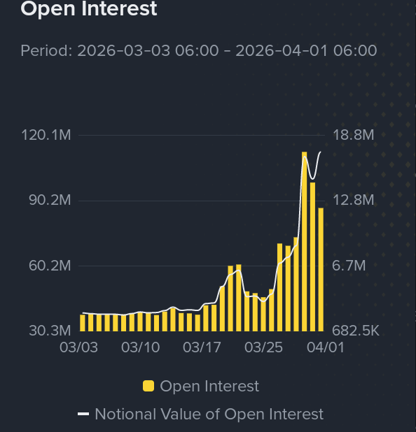 Open interest is rising sharply, which tells me new positions are entering, not just price moving on low liquidity. That usually means real participation. Volume also backs it up, strong activity from both sides, but buyers clearly took control during the move.