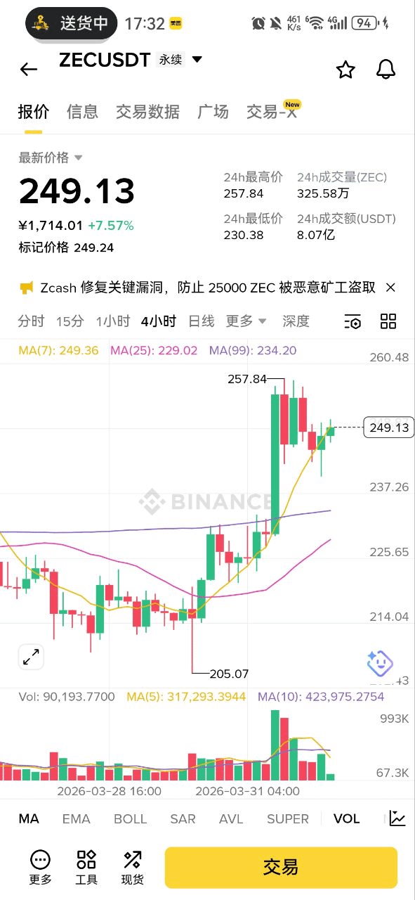 $ZEC 今天表现不错,价格已经涨到大概 248 美元 左右,24 小时涨了超过 6%,成交量也很大,比整个市场都要强。