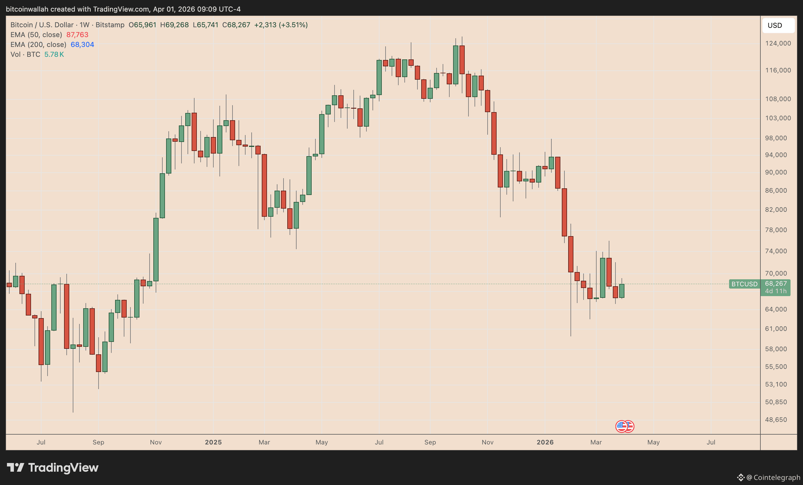 BTC could advance toward the flag’s upper trendline near $80,000 in April if the recovery gains further traction, particularly if boosted by renewed Strategy buying and signs of easing Iran war tensions.